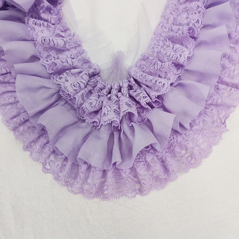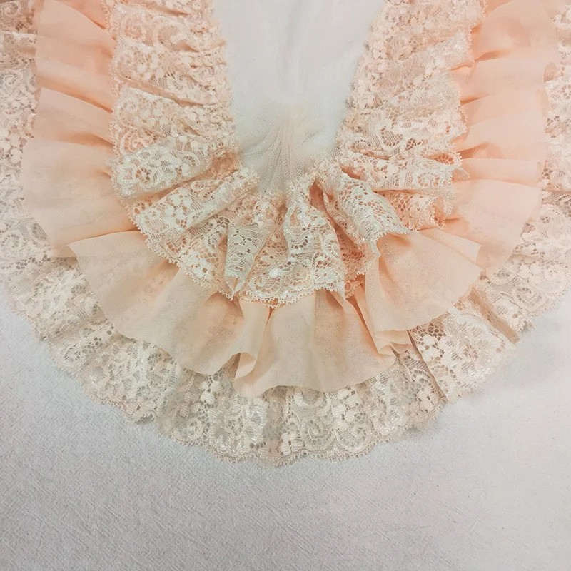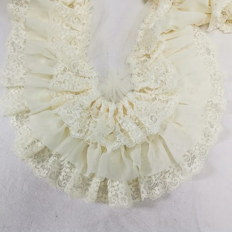 Tessuto in chiffon plissettato a tre strati con ricamo 91 cm di larghezza 10 cm Pizzo decorativo a volant per cucire decorazioni tessili