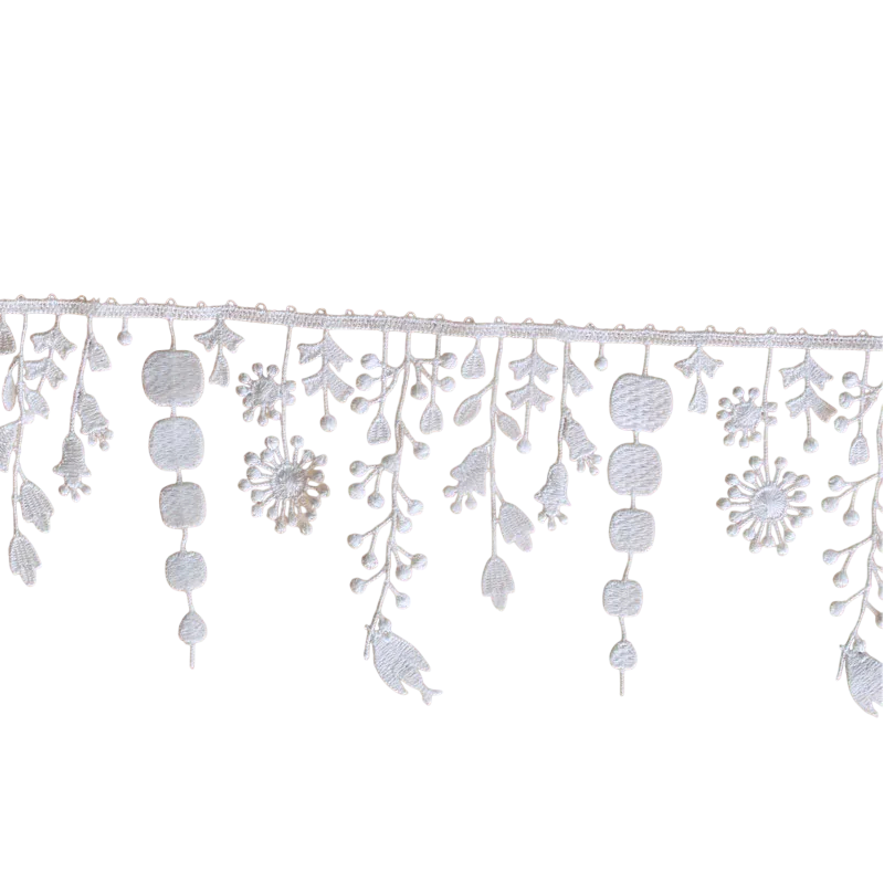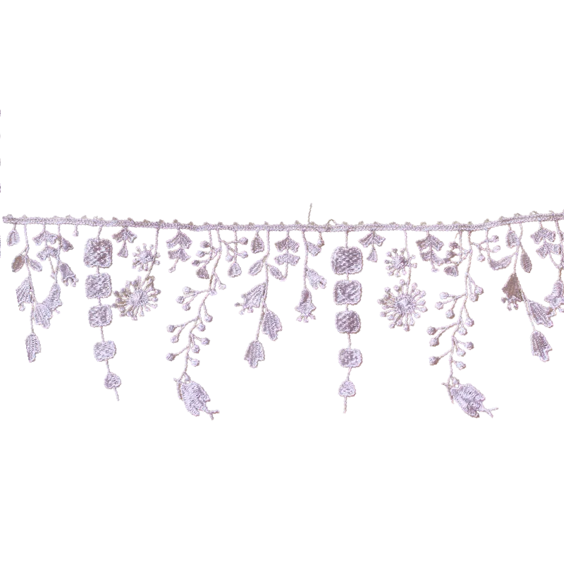 • Tessuto in pizzo con frange per decorazioni evidenti