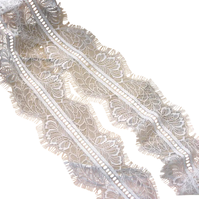 Nastro in pizzo decorativo adatto per cucire, abbellire abbigliamento, decorazioni nuziali e progetti creativi. La struttura delicata conferisce ai prodotti un aspetto elegante. Descrizione completa