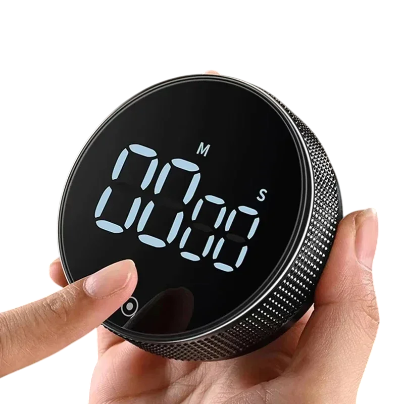 Pratico timer digitale con display LED e magnete. Facile impostazione, conto alla rovescia visivo, ideale per cucinare e per l'allenamento domestico. Descrizione completa