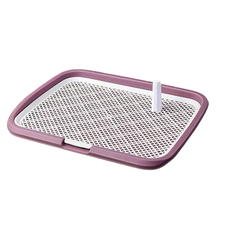 Pratica toilette in plastica per cani con rete removibile e fondo antiscivolo, adatta per un uso ripetuto a casa e durante l'addestramento dei cuccioli. Descrizione completa