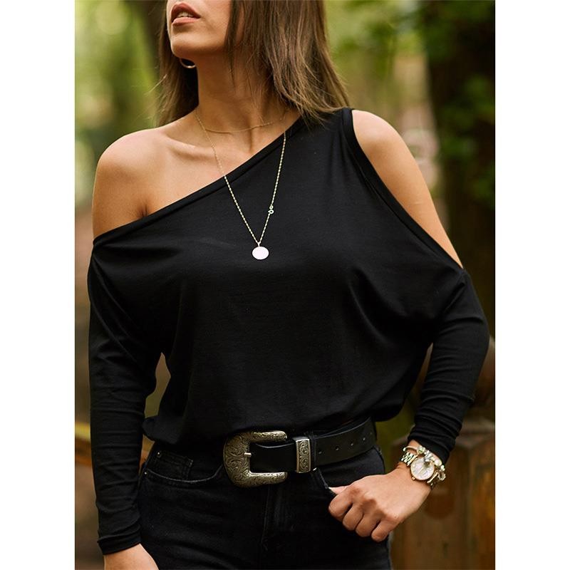 Top asimmetrico da donna nero A1326