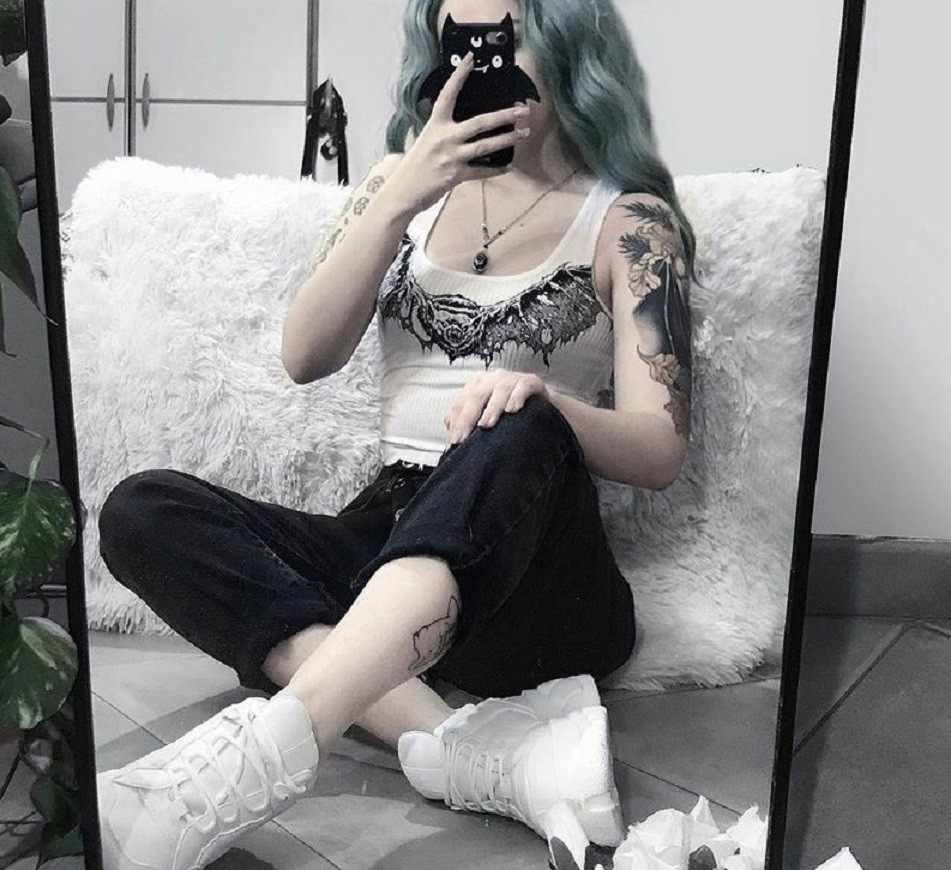 Top corto da donna con stampa di pipistrello