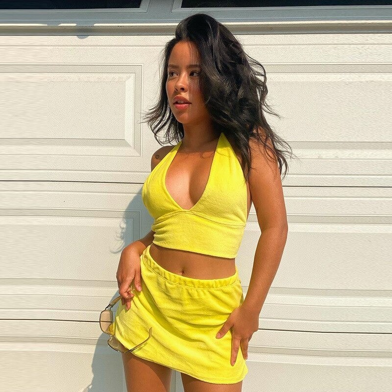 Top corto da donna e gonna