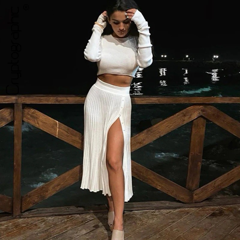 Top corto da donna e gonna