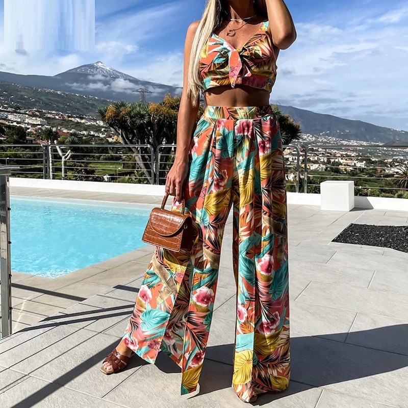 Top corto da donna e pantaloni