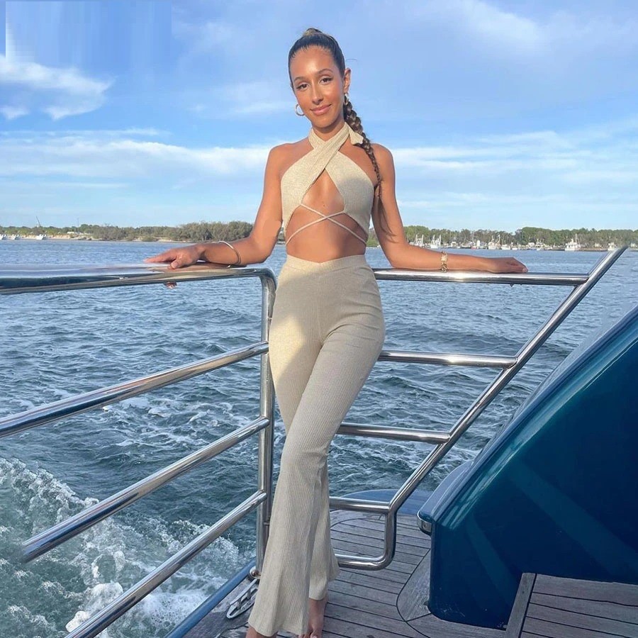 Top corto da donna e pantaloni
