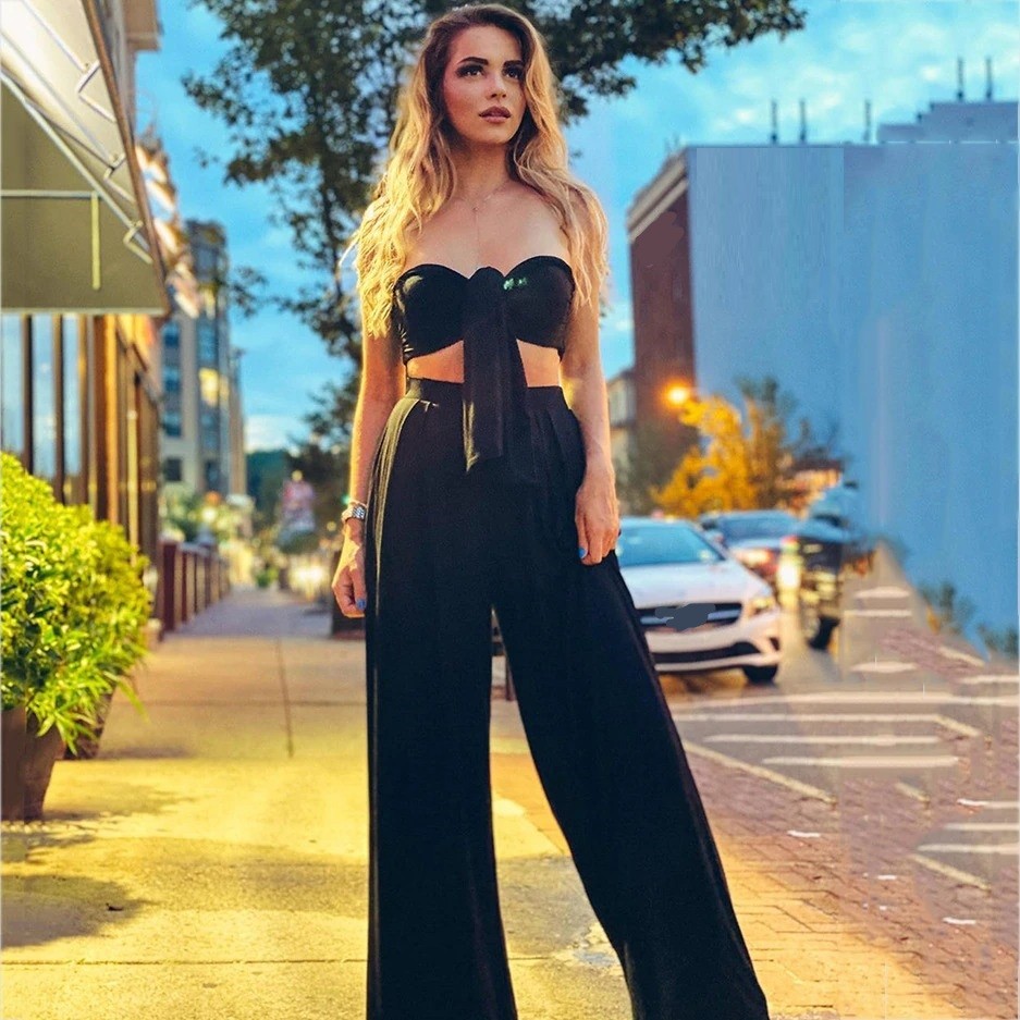 Top corto da donna e pantaloni