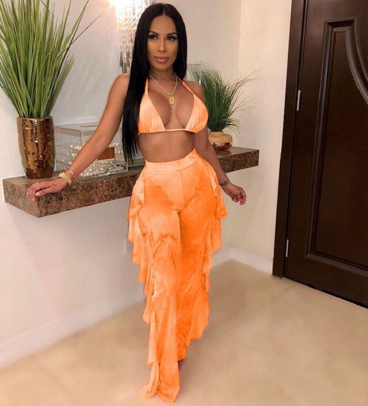 Top corto da spiaggia e pantaloni da donna A2843