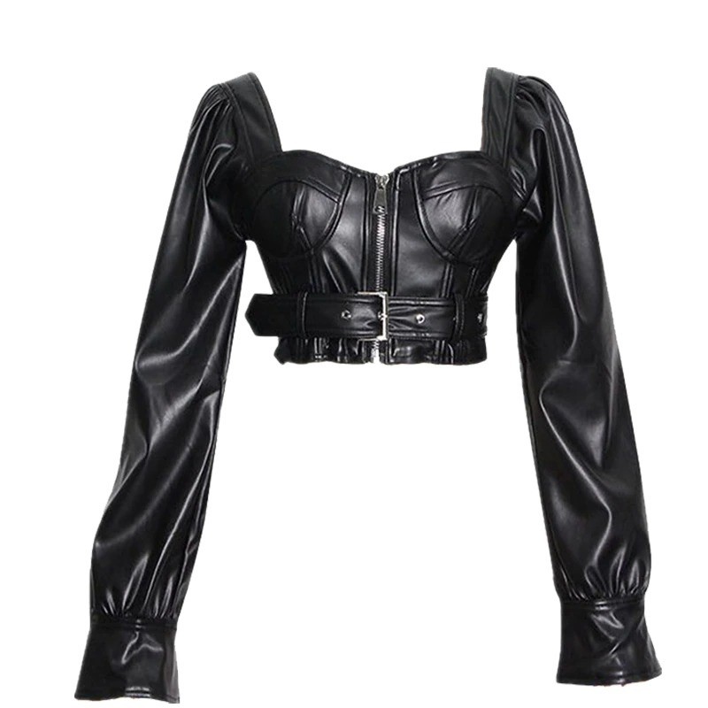 Top corto in pelle da donna P1789
