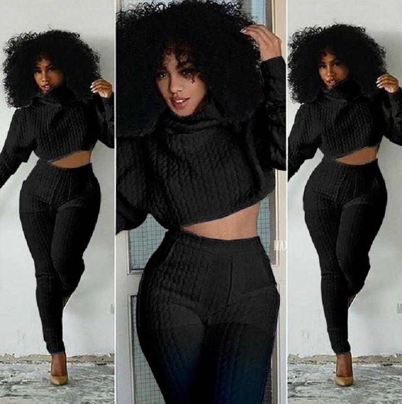Top corto lavorato a maglia da donna e pantaloni P1669
