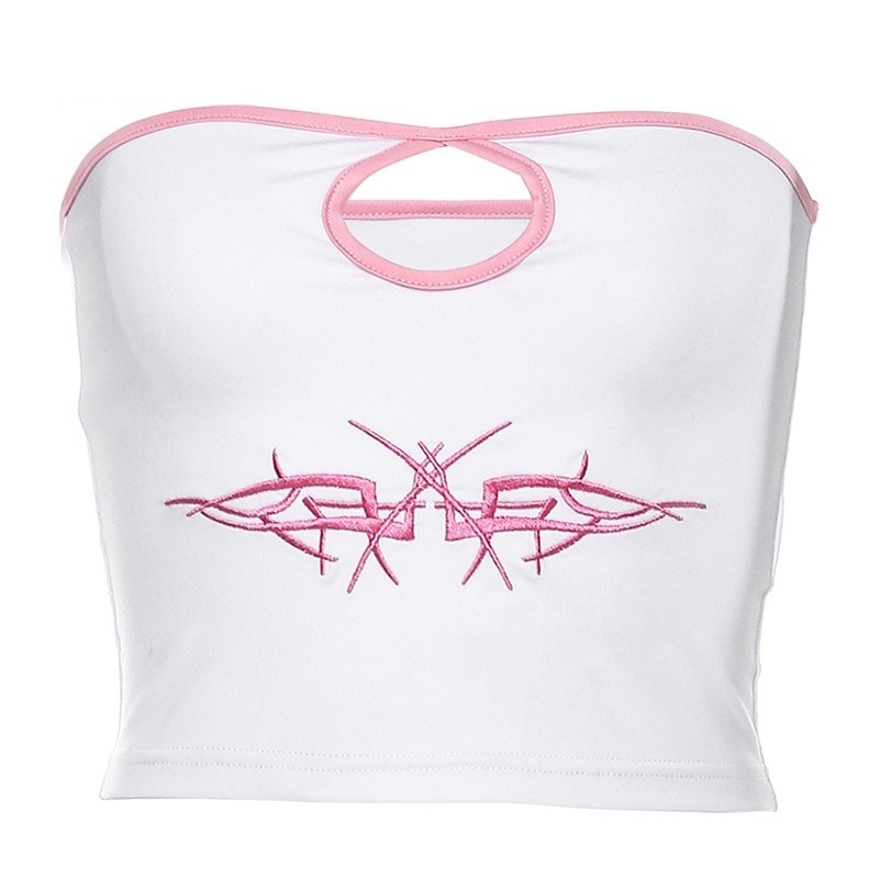 Top crop da donna senza spalline bianco