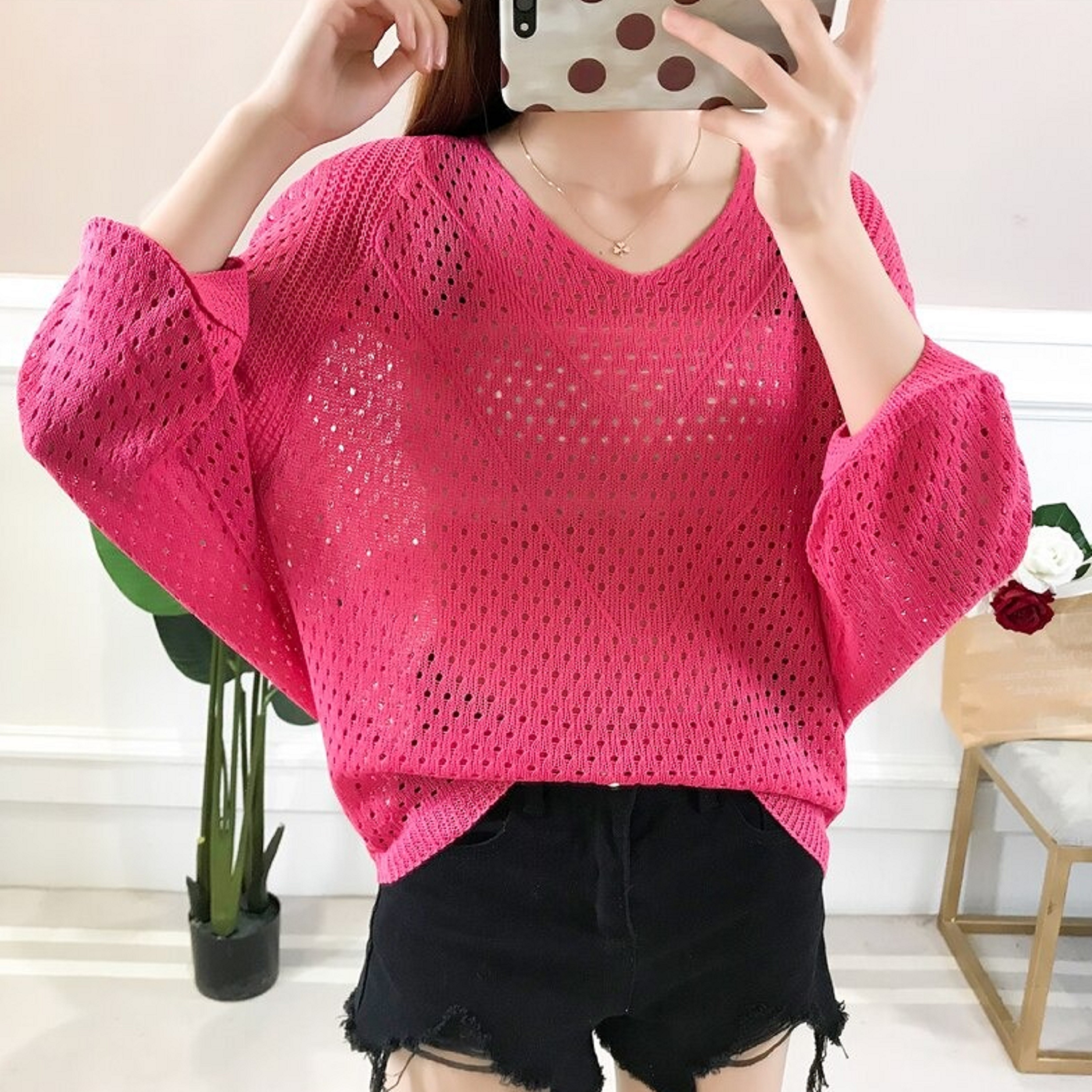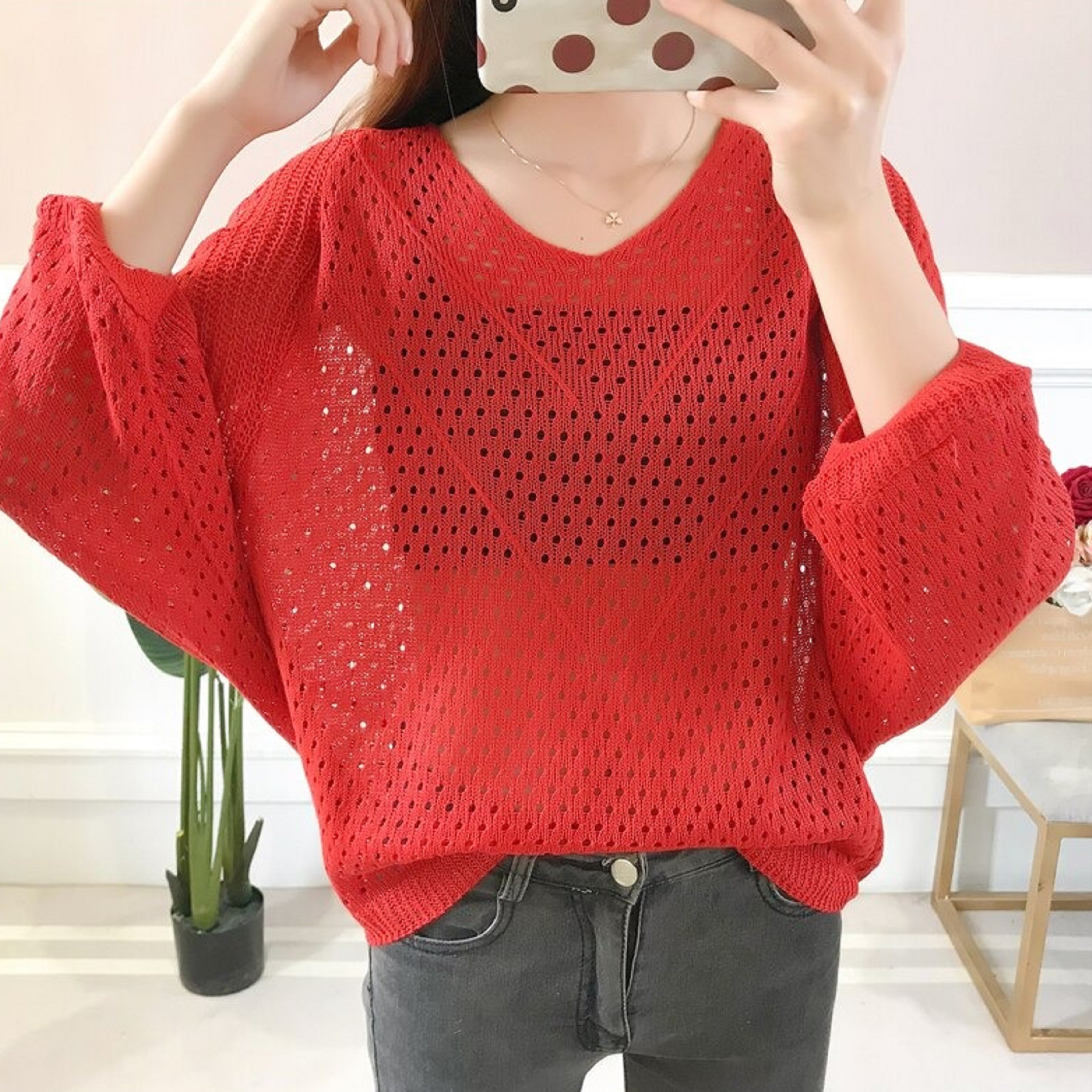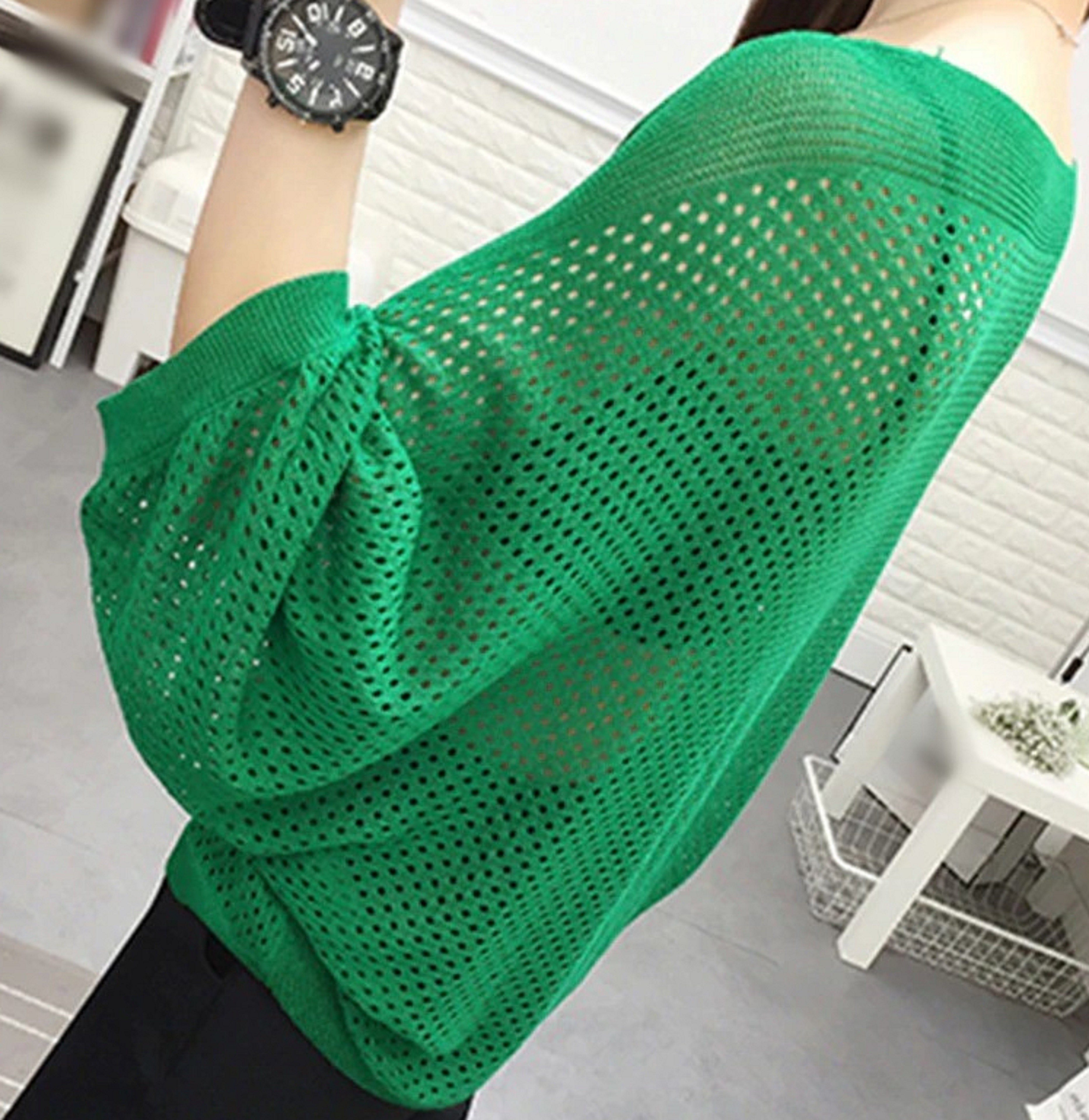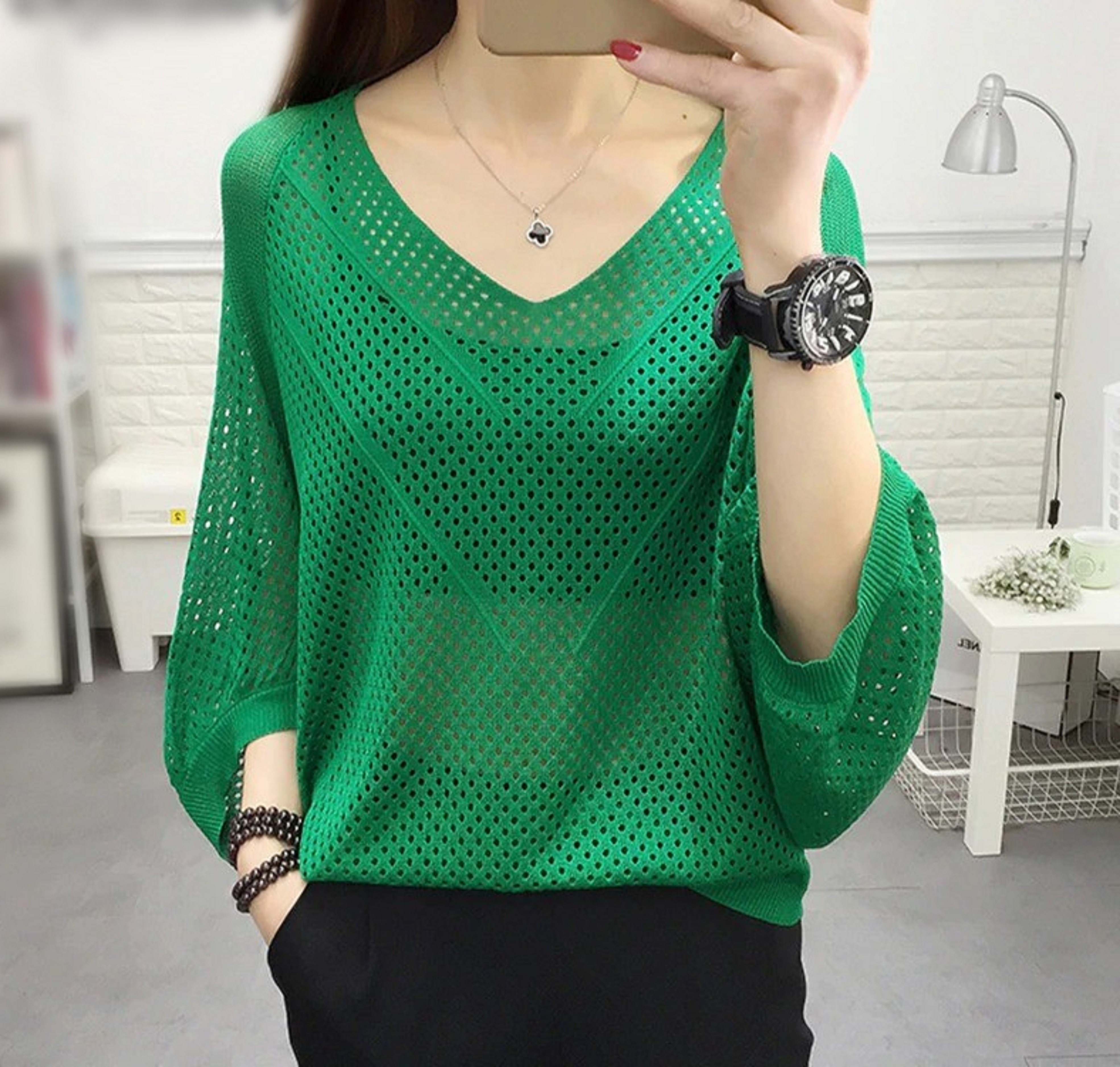 Top da donna traforato con maniche lunghe