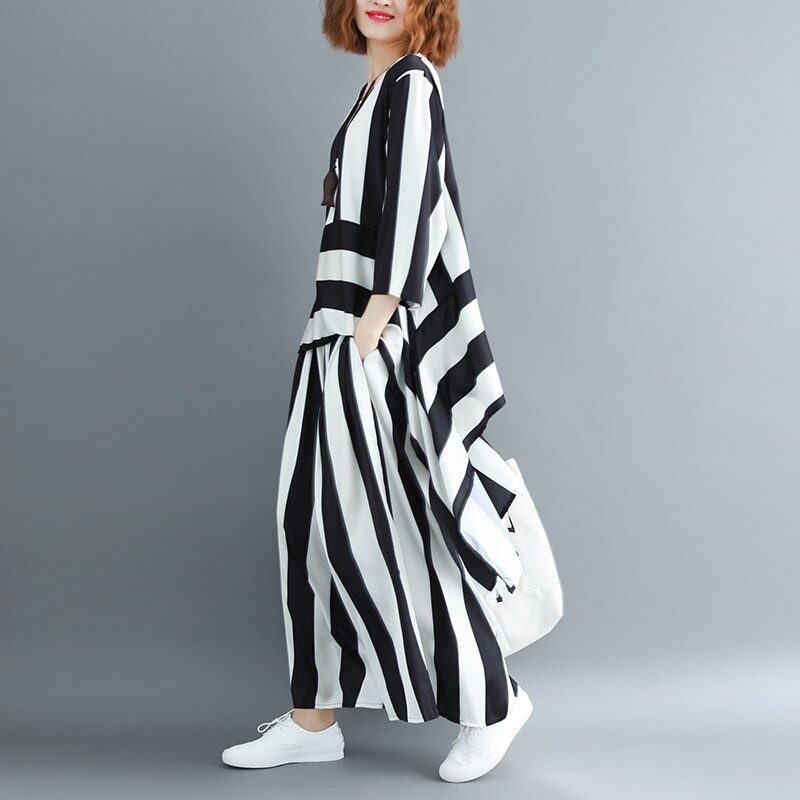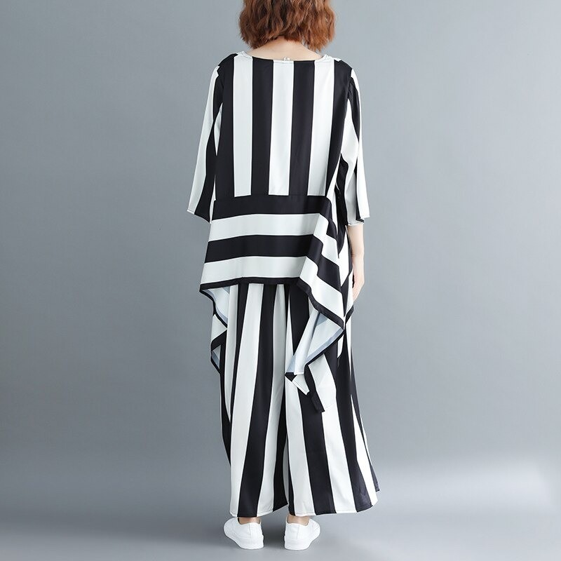 Top e pantaloni a righe da donna