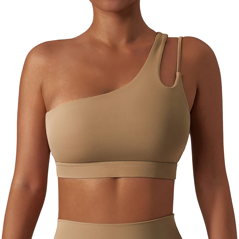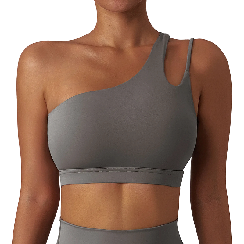 Top sportivo alla moda con spallina singola e effetto push-up, progettato per un supporto ottimale e comfort durante l'allenamento. Ideale per donne attive. Descrizione completa