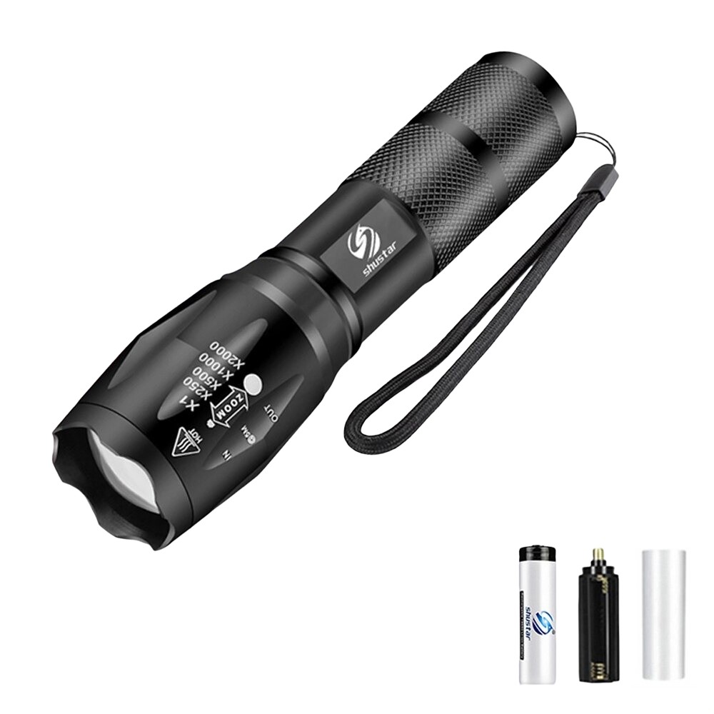 Contenuto della confezione: 1x torcia, 1x batteria ricaricabile, 1x slot per batteria AAA, 1x custodia per batteria ricaricabile
