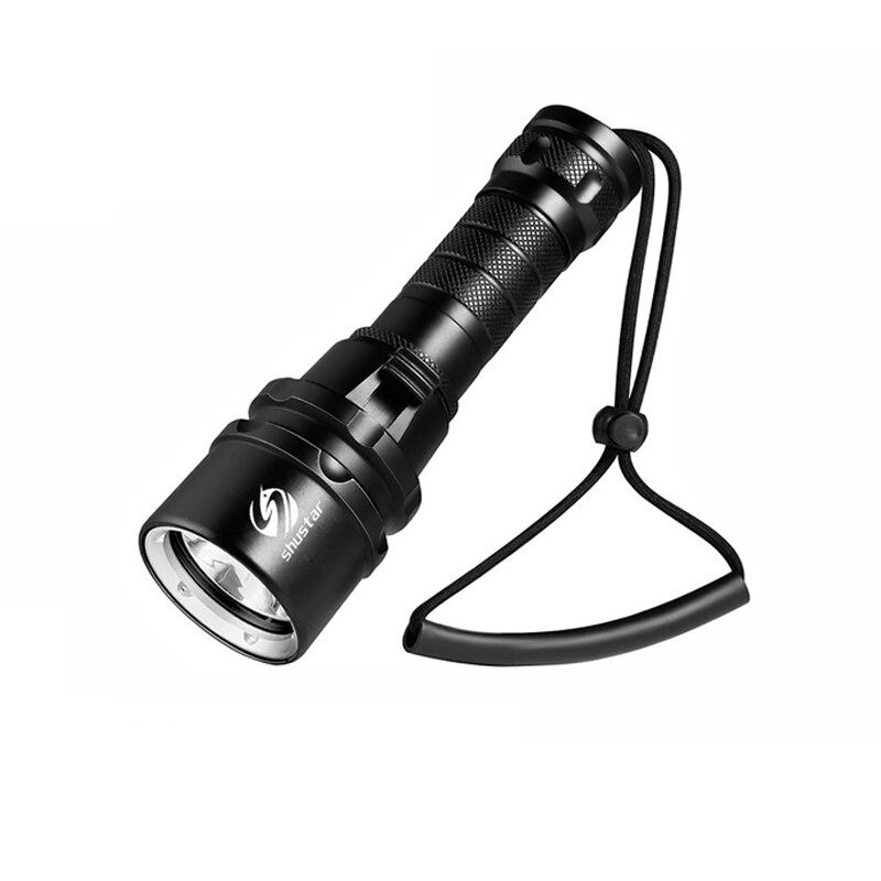 Torcia, che è progettata per immersioni, pesca e campeggio. Ti aiuterà a vedere fino a 50 - 100 m di distanza. È realizzata in materiale resistente.