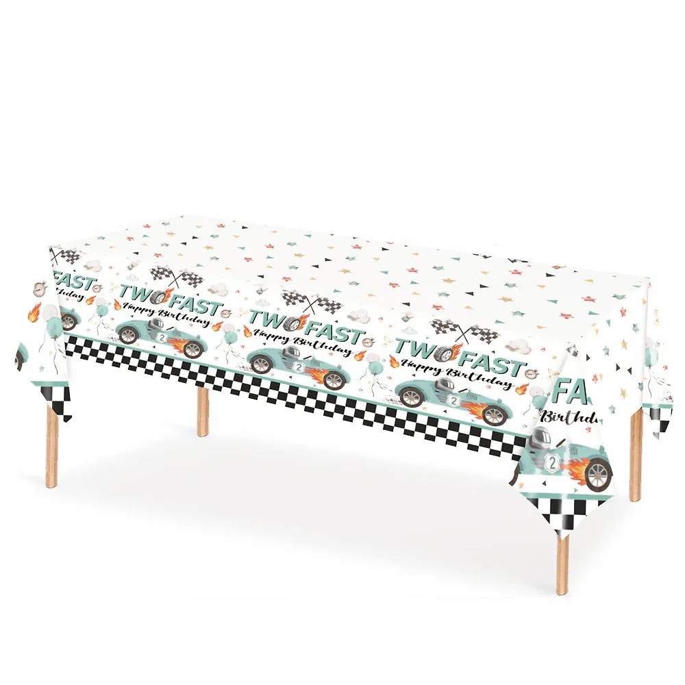 Tovaglia 137 x 274 cm Two Fast Auto da corsa blu Tovaglia per festa di compleanno per bambini decorazione da tavolo da corsa
