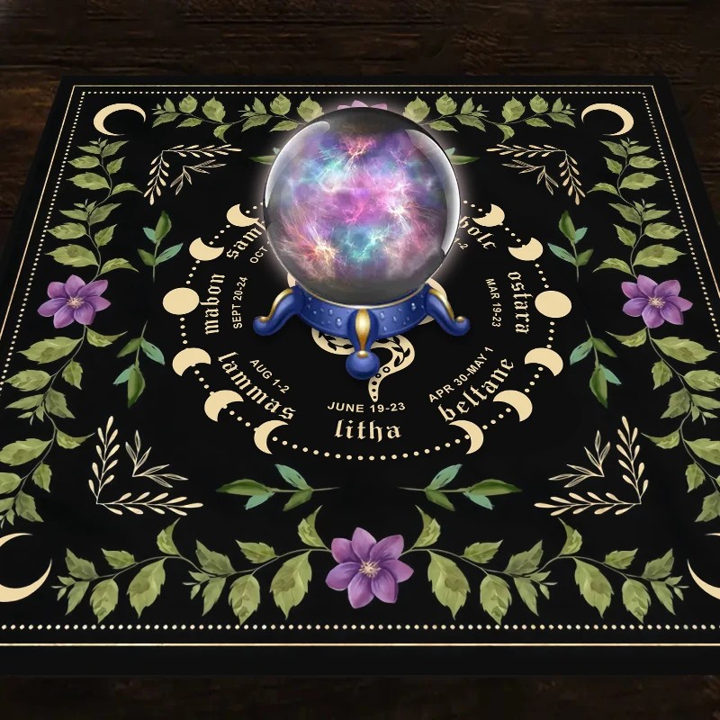 Questa tovaglia nera con motivi dei tarocchi e motivo di serpente di 49 x 49 cm è l'accessorio ideale per tutti coloro che cercano una combinazione di eleganza, simbolismo e funzionalità. Grazie alle sue dimensioni compatte, si adatta a tavolini e altari più piccoli, ed è quindi perfetta per divinazione, lettura delle carte, rituali o meditazione. Il motivo del serpente simboleggia saggezza, forza e trasformazione, sottolineando il carattere spirituale della tovaglia. È realizzata in materiale resistente e facile da mantenere, che garantisce una lunga durata. Il colore nero combinato con la stampa dettagliata crea un contrasto impressionante e conferisce all'ambiente un tocco di mistero.