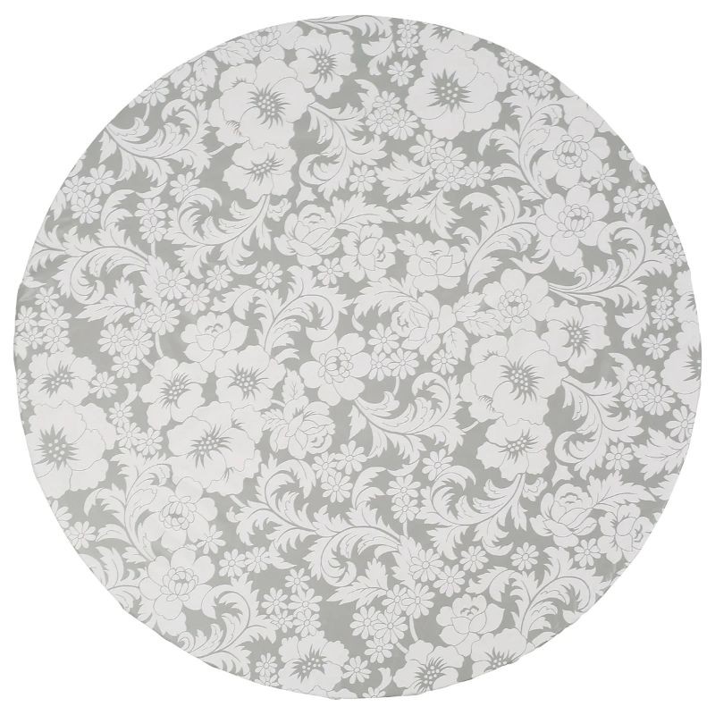 Tovagliolo rotondo in PVC con bordo elastico 102–112 cm Tovagliolo impermeabile e resistente all'olio grigio bianco con motivo floreale Copertura protettiva per tavolo per feste