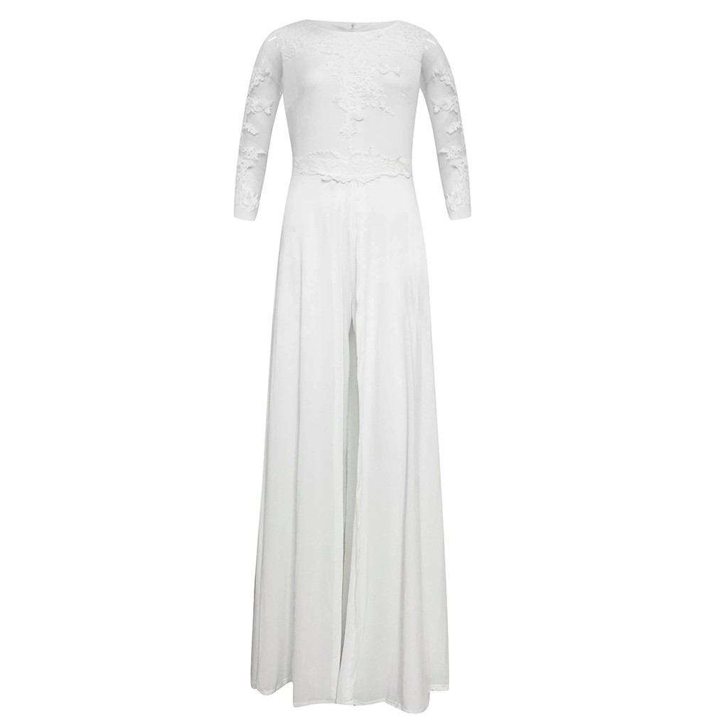 Tuta bianca da donna con strascico e pizzo