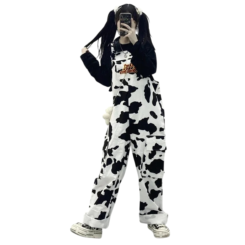 Pagina iniziale Pagina iniziale Abbigliamento e accessori Abbigliamento donna Tute jumpsuit da donna Tute jumpsuit lunghe da donna Tuta da donna bianca con pois neri Motivo mucca Scritta dont talk to strangers Tasche Scollo a O Pantaloni lunghi Canotta