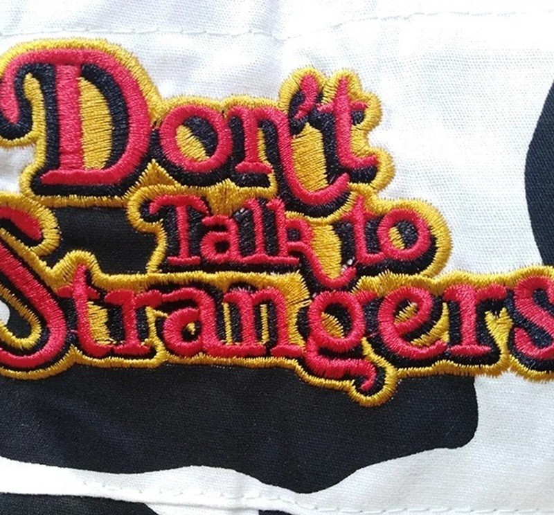 • Motivo mucca con scritta dont talk to strangers per un aspetto originale