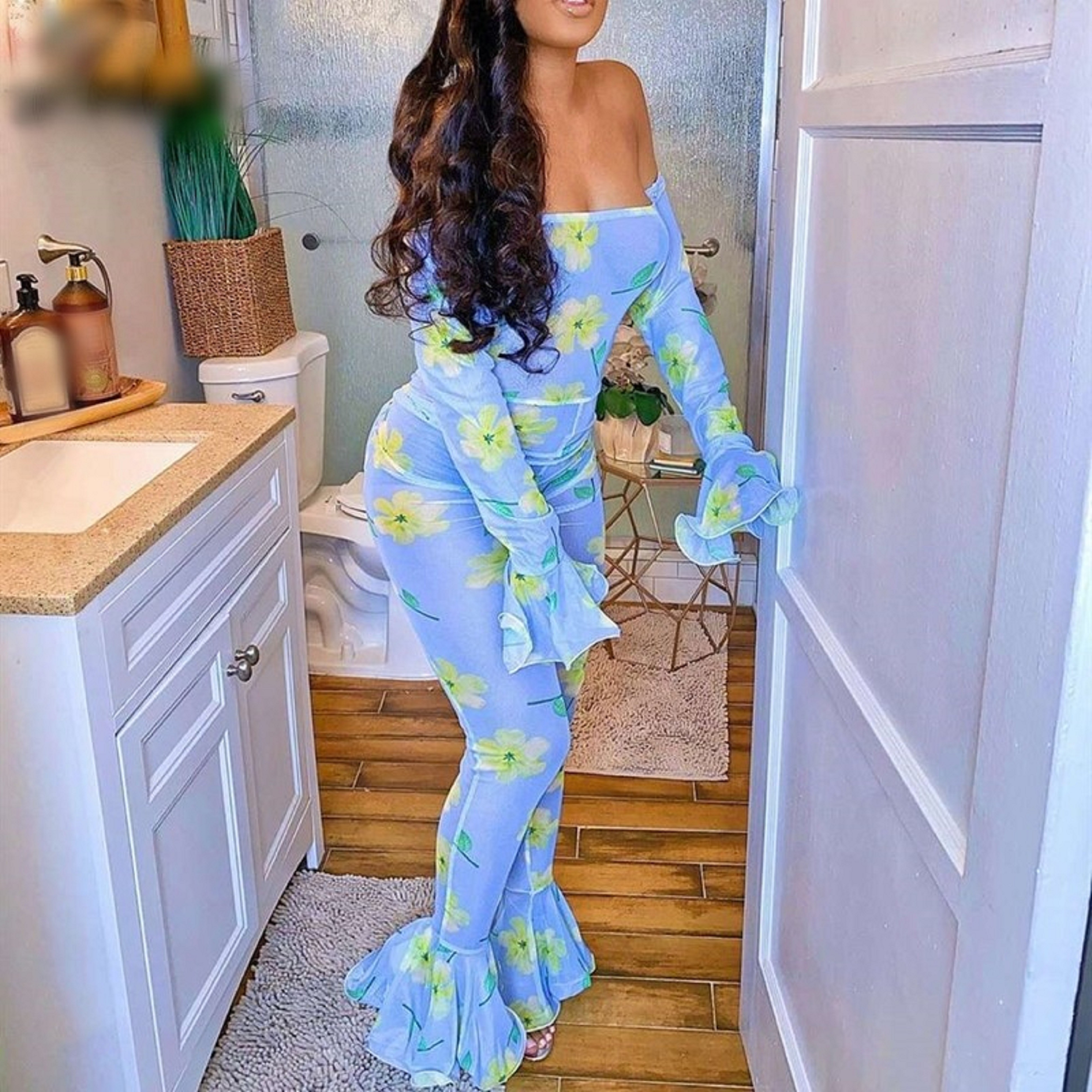Tuta da donna floreale con volant