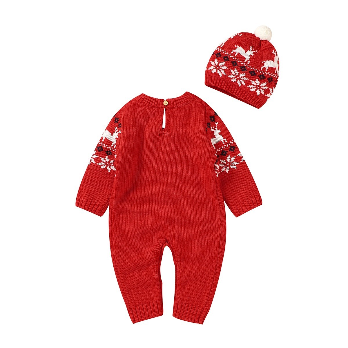 Tutina lavorata a maglia con cappello. Motivo natalizio.