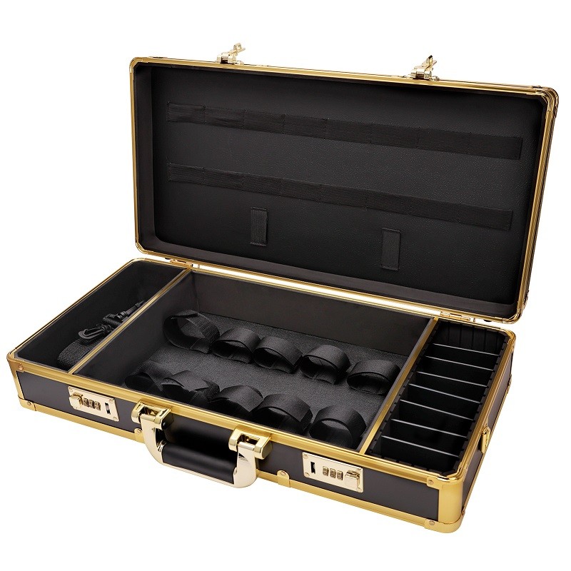 Lussuosa valigia d'oro in alluminio per parrucchieri, con impermeabilità e lucchetto a codice, ideale per i viaggi. 56 x 33 x 11 cm. Descrizione completa