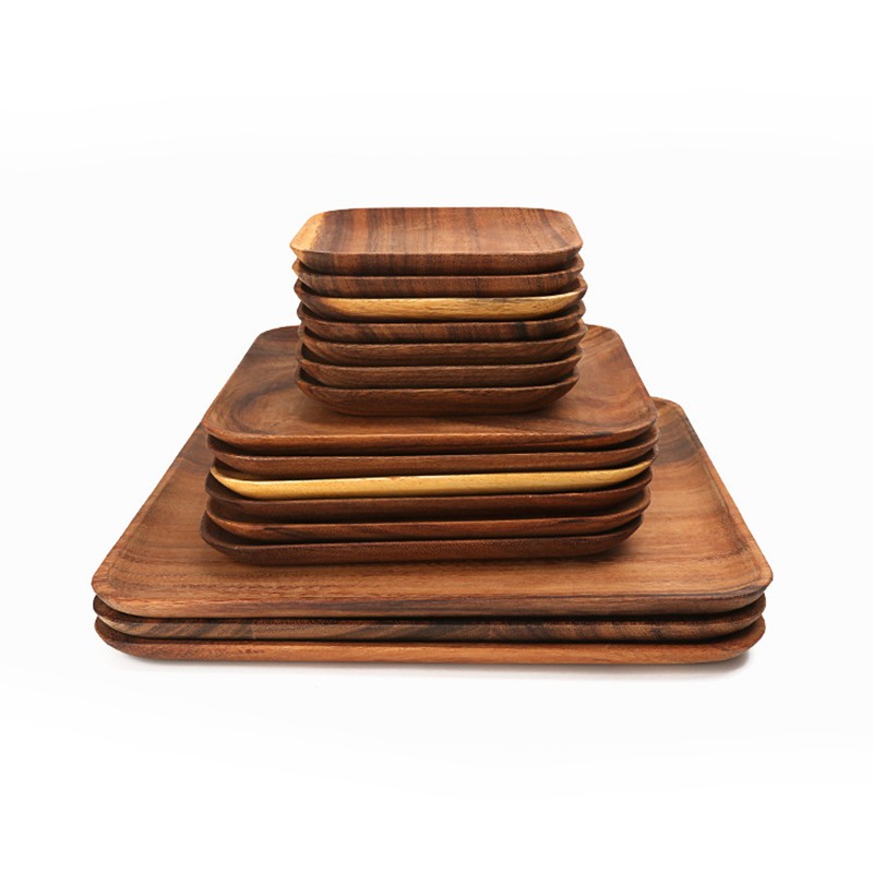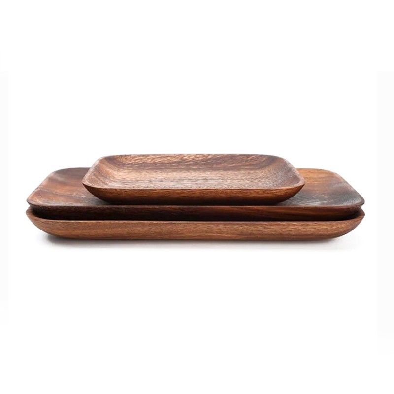 Vassoio in legno di alta qualità disponibile in variante quadrata o rettangolare.