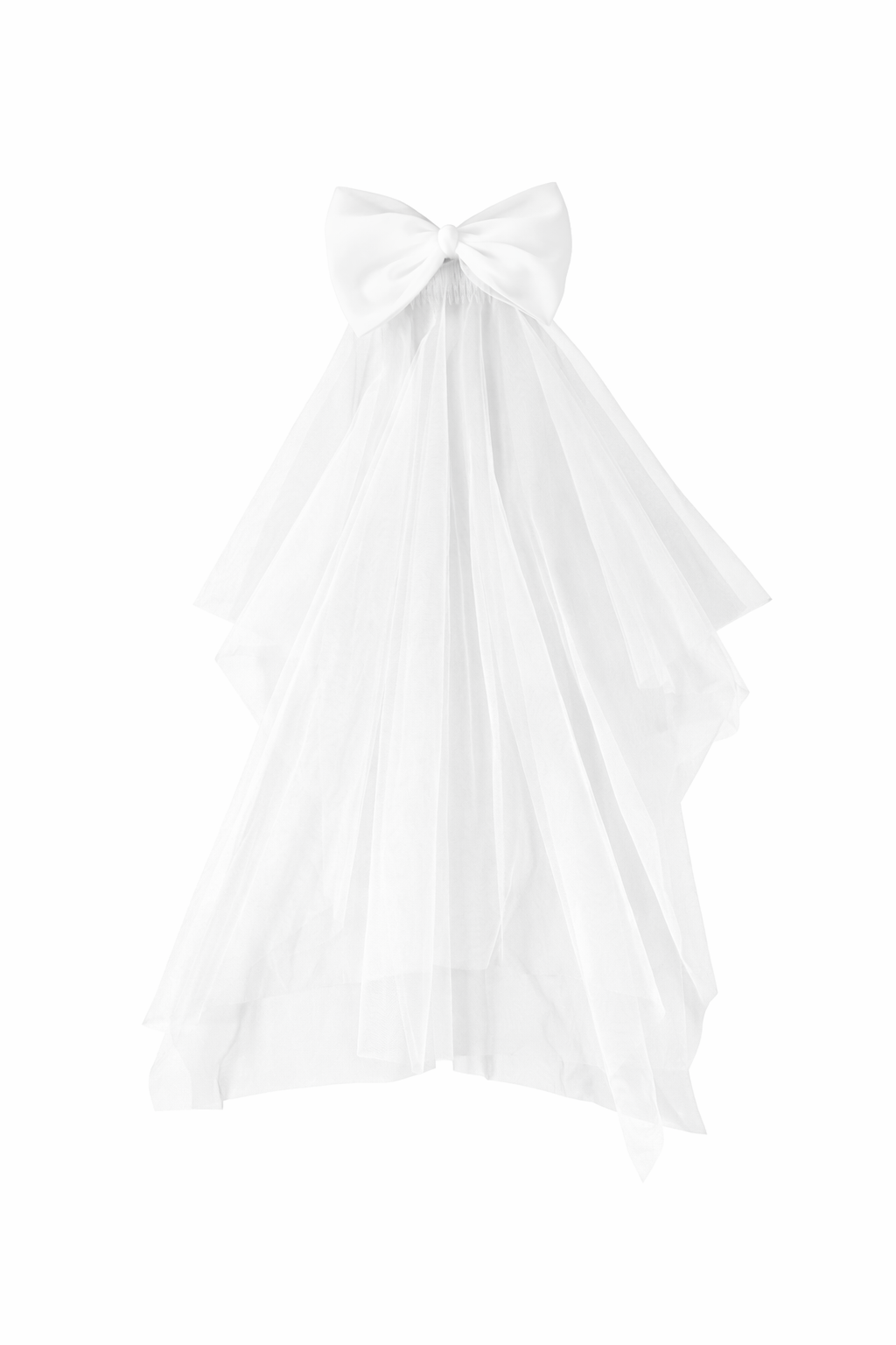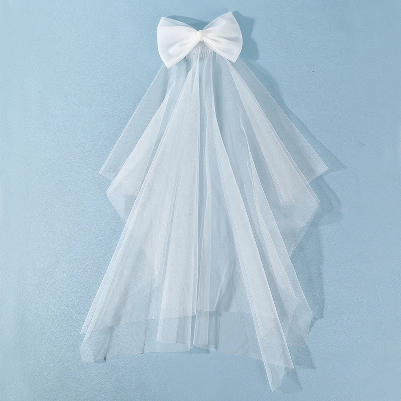 Il fiocco dominante conferisce all'accessorio un aspetto elegante e giocoso allo stesso tempo. Il velum completa splendidamente l'outfit da sposa, l'outfit per l'addio al nubilato e le foto tematiche.