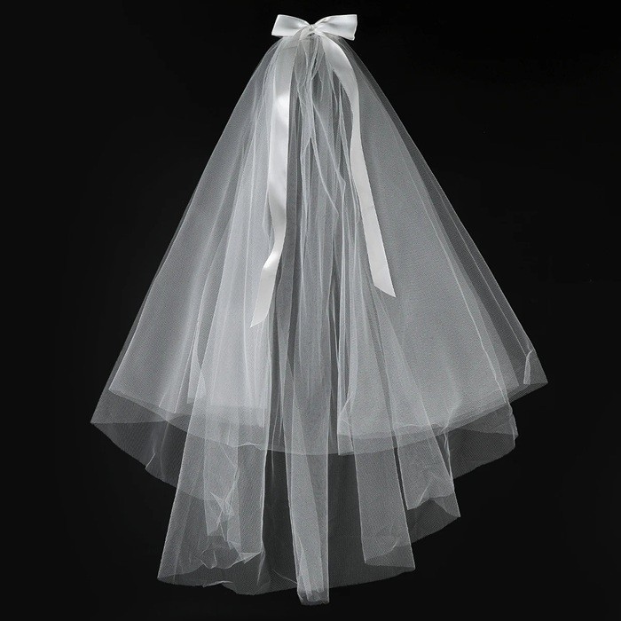 Romantico velum bianco in tulle con delicato fiocco. Accessorio leggero e arioso per la sposa, addio al nubilato e celebrazioni nuziali. Descrizione completa