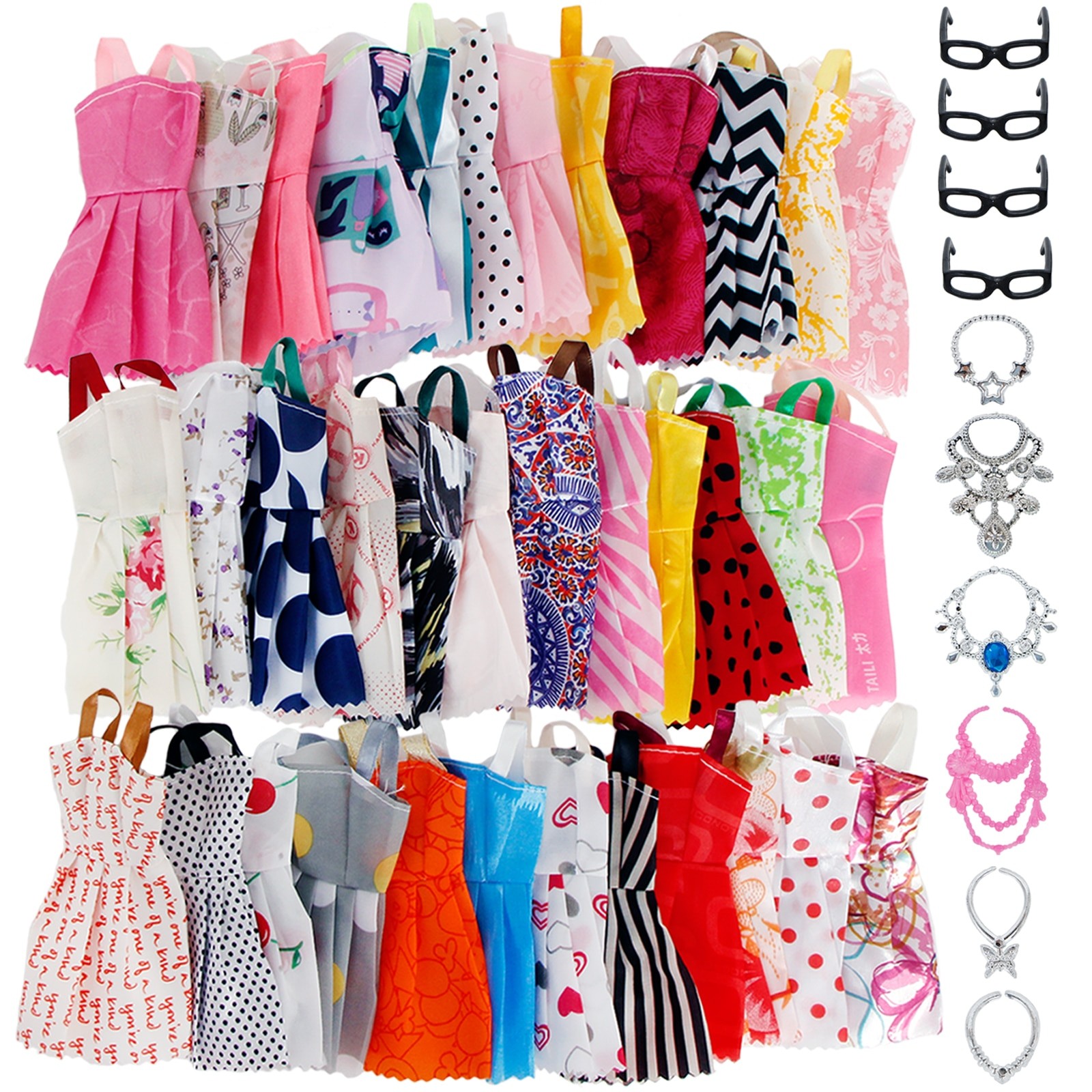 La confezione contiene 10x vestiti, 6x collane, 4x occhiali neri