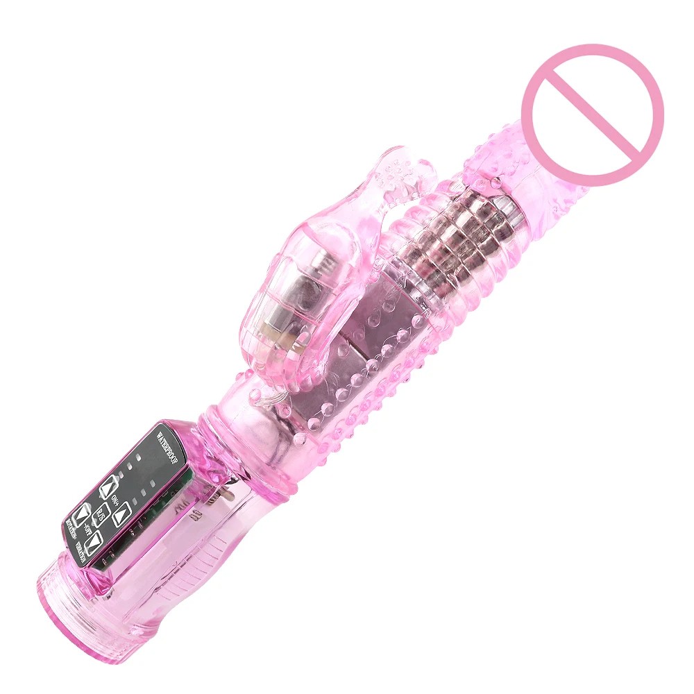 Vibratore trasparente doppio con stimolatore a testa di coniglio e 2 modalità di rotazione e 10 modalità di vibrazione per massaggio del punto G e vaginale 23x3,3 cm confezione discreta