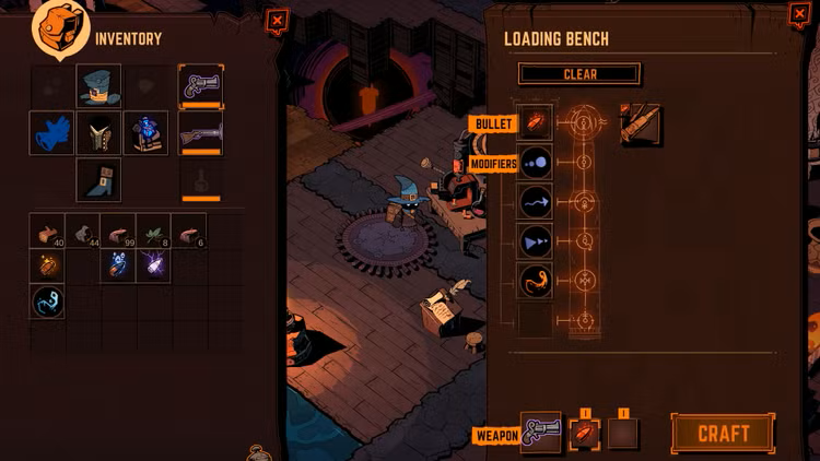 Raccogli risorse dal mondo e crea munizioni magiche uniche per il tuo arsenale di armi. Combina elementi per effetti previsti o sorprendenti che modificano il colpo, il raggio d'esplosione, la scia del proiettile e persino lo stato delle creature nel tuo mirino.