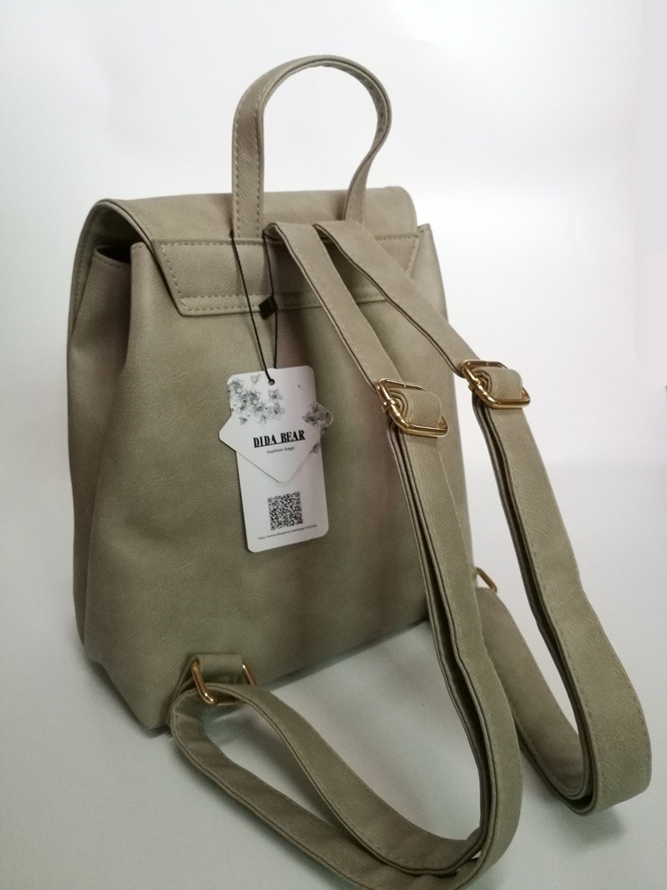 Elegante zaino a una camera chiuso con cinturini e chiusura metallica, con pattina a due cinturini.