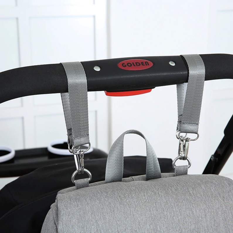 Grazie alle cinghie, puoi appendere lo zaino sia al passeggino che alla valigia.