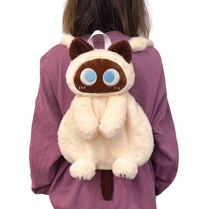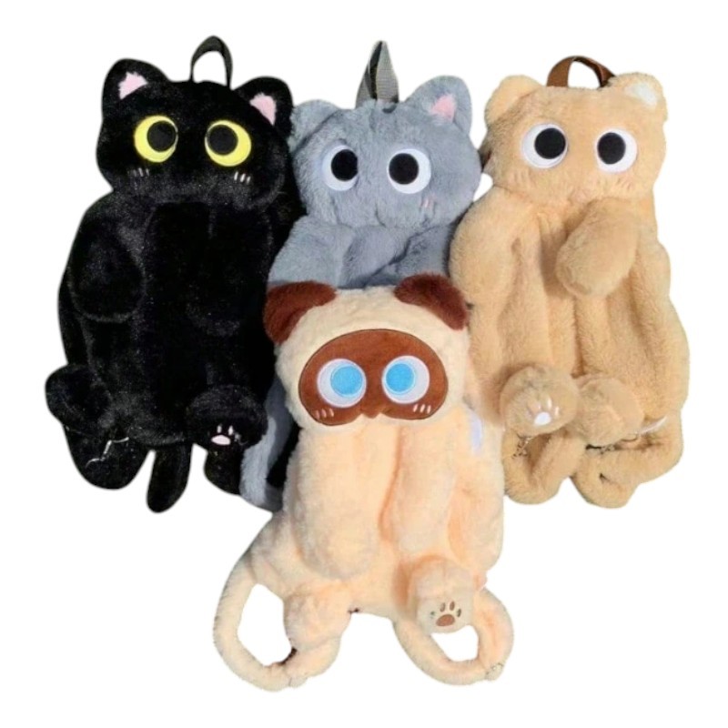 Zaino in peluche a forma di gatto realizzato in materiale morbido, ideale per bambini durante escursioni, all'asilo e per l'uso quotidiano. Descrizione completa
