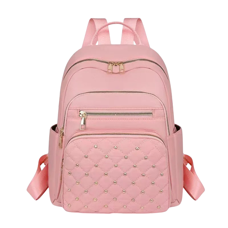 Questo zaino moda da donna è progettato per donne che cercano una combinazione di praticità, comfort e aspetto moderno. Grazie al suo stile casual, si adatta sia all'uso quotidiano che ai viaggi, allo shopping o alle attività ricreative. Le dimensioni compatte di 27 × 12 × 30 cm offrono spazio sufficiente per tutte le necessità, senza far sembrare lo zaino ingombrante. La combinazione di alta qualità di nylon e poliestere garantisce leggerezza e un comfort duraturo per tutto il giorno. I dettagli eleganti come la tasca frontale trapuntata con strass conferiscono allo zaino un carattere moda distintivo.