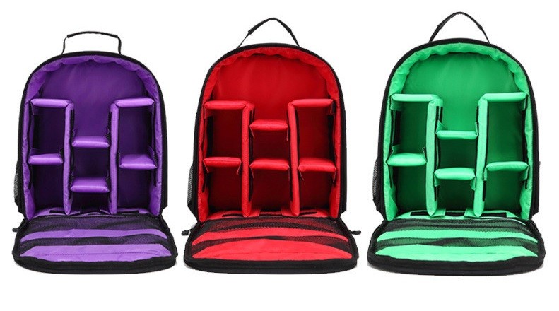 Zaino elegante con fodera colorata, compatibile con la maggior parte delle fotocamere DSLR.