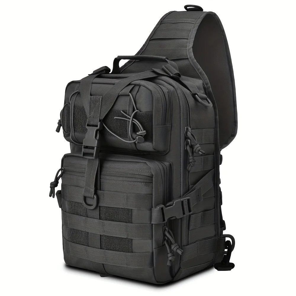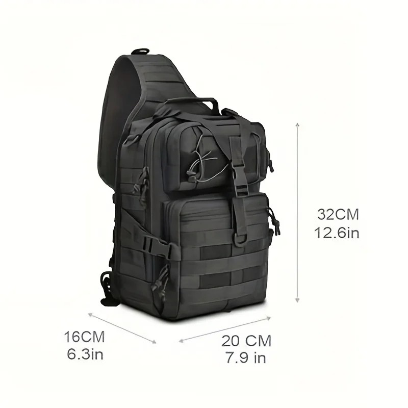 Questo zaino tattico compatto è progettato per attività all'aperto impegnative, dove sono richiesti affidabilità, resistenza e massima funzionalità. Grazie al materiale impermeabile, protegge in modo affidabile i tuoi oggetti dalla pioggia e dall'umidità. Lo zaino ha dimensioni di 32×20×16 cm ed è ideale come zaino da petto o da polso per un rapido accesso all'attrezzatura durante escursioni o campeggio. È dotato di più scomparti e spallacci regolabili per un trasporto confortevole e un'organizzazione ottimale. La sua robusta costruzione è ispirata allo stile militare ed è adatta sia per uomini che per donne.